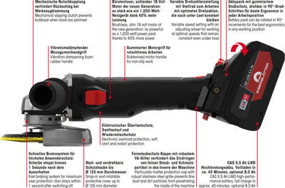 - Optimised speed of 5,600 rpm with gear reduction for high torque, for the FIX HOOK & LOOP system with an adapter.