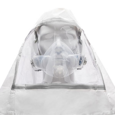 The CleanSpace Hood is suitable for use with any CleanSpace half mask system and is designed to provide protection against splash and air-borne contaminants. The Hood does not provide or contribute to the system’s respiratory protection and must always be used alongside a CleanSpace Half Mask and a CleanSpace Particulate Filter. The CleanSpace Hood is simply placed over the top of a fully configured half mask system and does not interface directly with the respiratory system.