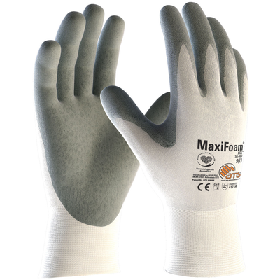 - Foam nitrile coating designed to channel away oil for better grip.