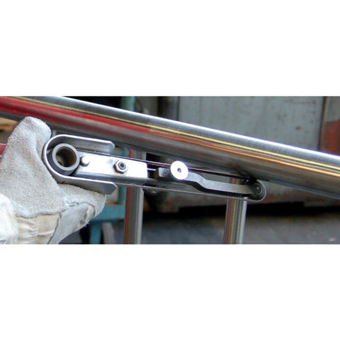 Applications: Powerful, lightweight belt grinder. For cleaning and removing burrs, defining a radius, blending surface finishes, fillet weld grinding and finishing, tight access applications and generating decorative satin finishes on metal