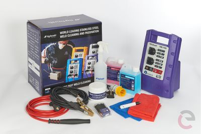 Do you want the FASTEST TIG & MIG electrolytic weld cleaner in the World? Years of experience, ongoing research and development and, customer feedback have resulted in the TIG Brush™ TBE-700 attaining this status! Already recognized as the fastest, most powerful electrochemical weld cleaner of its type in the industry at a competition ending 110 amps @ 100% duty cycle; the well known and reliable 700 series retains market dominance offering a speed for MIG & TIG weld cleaning that is at least twice the speed of the nearest alternative. The machine can also be used for electropolishing, surface cleaning, and branding stainless steel.